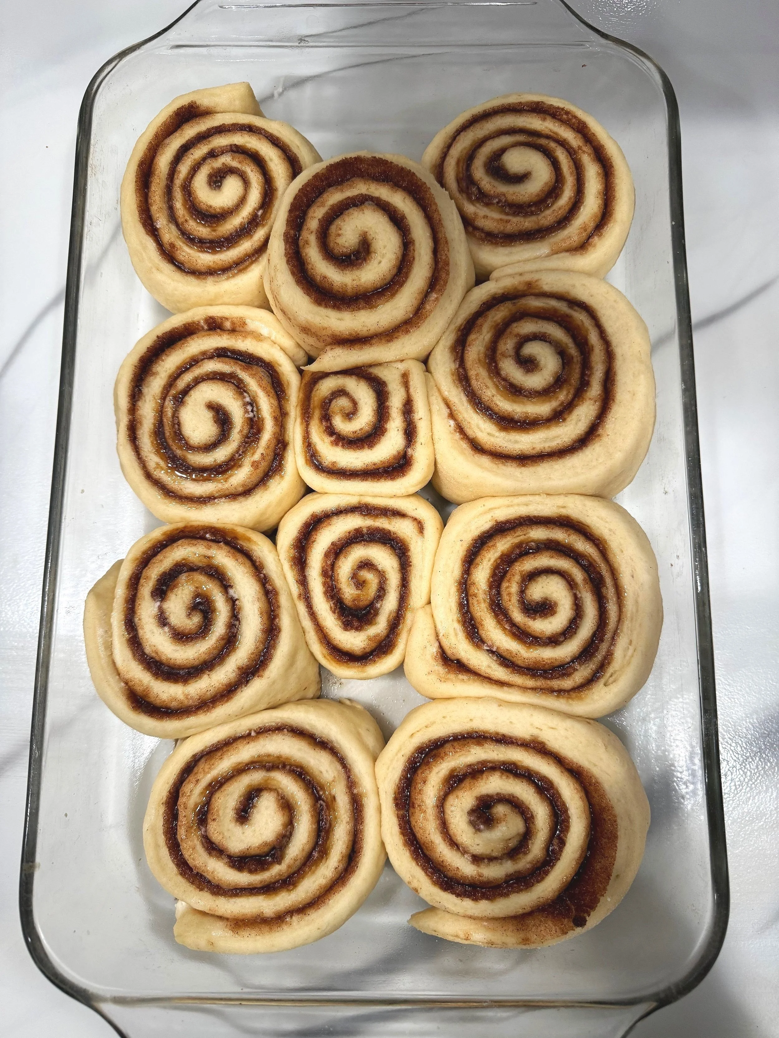 Roll the dough tightly into a log and cut it into 9-12 even pieces. Place the rolls into a greased 9x9-inch baking pan.
